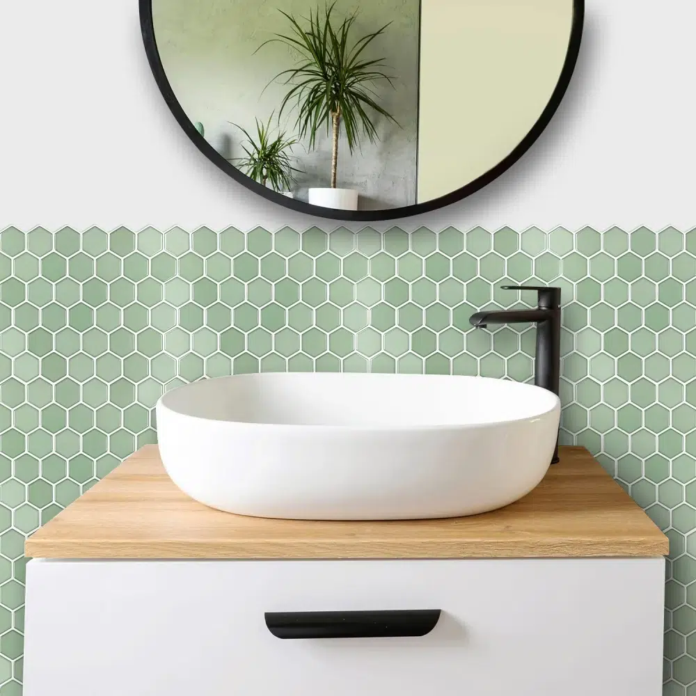 Azulejo Adhesivo Hexagonal Verde Salvia
