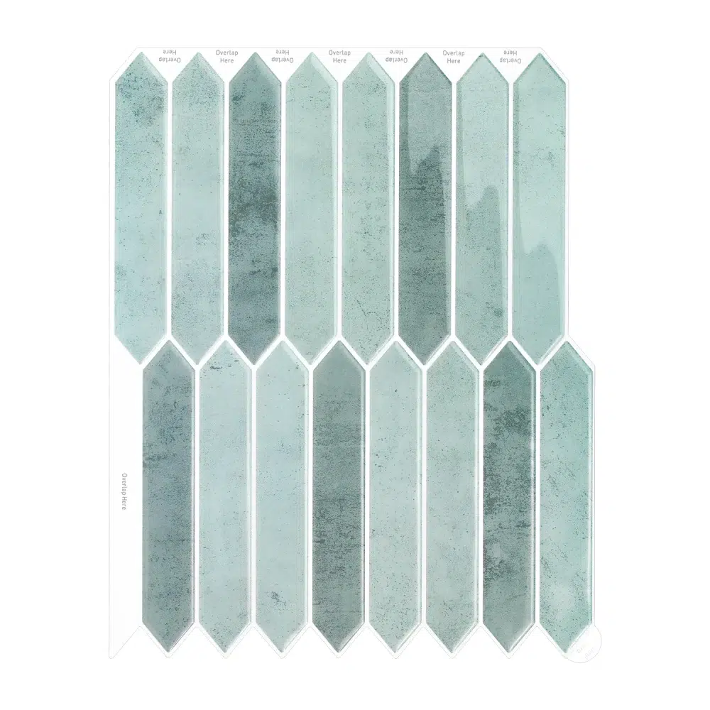 Azulejo adhesivo alargado en tono verde agua con efecto envejecido y acabado esmaltado. Ideal para aportar frescura y un estilo decorativo elegante en cocina o baño sin obras.