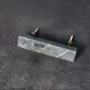 Tirador y manija para puerta de armario de piedra gris con incrustaciones diagonales de latón. Ref Dt0143